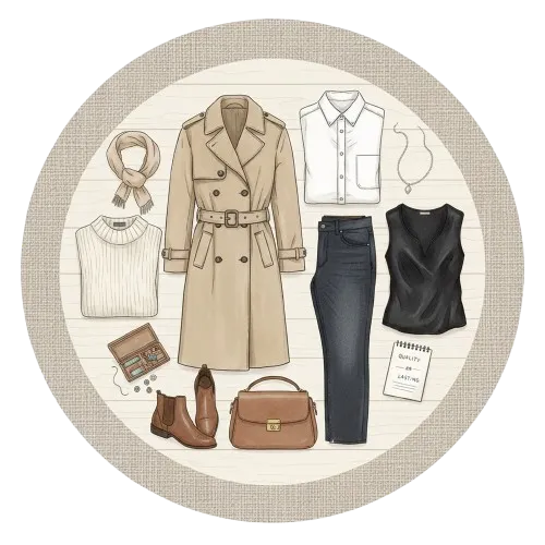 Hvert plagg i kjernekapselen er valgt for sin evne til å fungere som fundament for flere kombinasjoner. Fra grunnleggende topper til strukturerte ytterplagg, hver gjenstand har et klart formål.